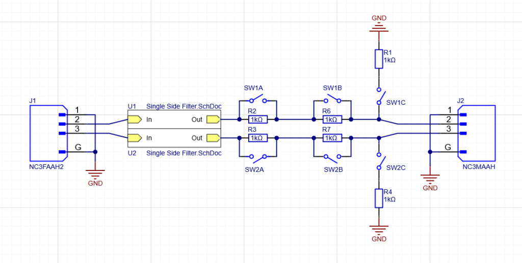 The goal of this filter is to remove the switching noise from a class D amplifier output (and (optionally) divide the high voltage output down to a lower sense voltage) so its output, and how well it actually reproduces sound, can accurately be measured with a regular audio interface.
