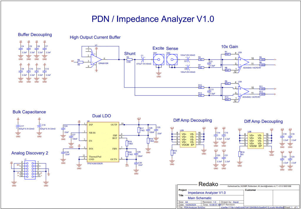 This lead me to design these! Analog Discovery 2/3 extension boards to do DC – 25MHz Power Delivery Network / Impedance analysis measurements. The final (and first) version measures impedance from 10kΩ all the way down to 100µΩ, with and without DC bias, on both powered and unpowered DUTs, basically doing a true 4 wire resistance measurement for AC impedances.