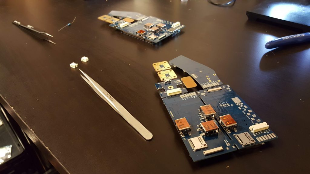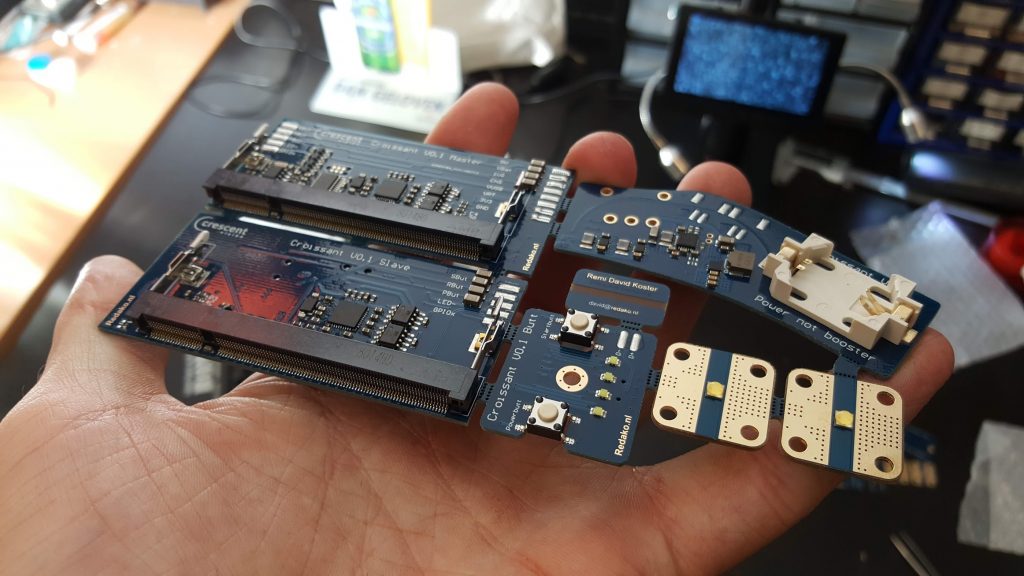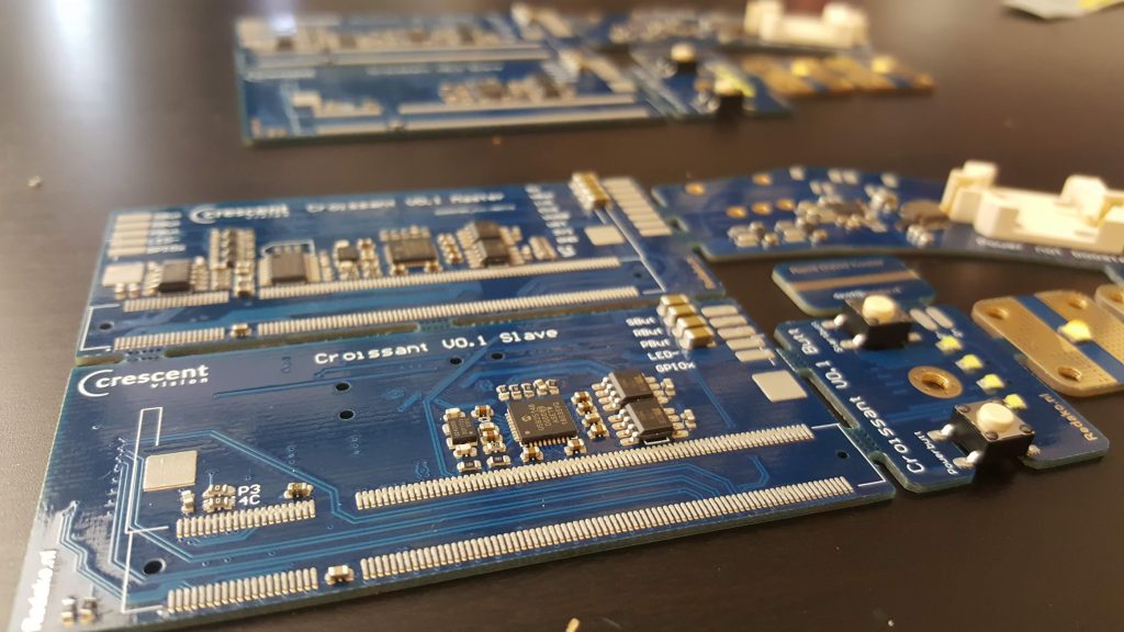 I developed the hardware for a range of Crescent Vision’s prototypes, one shown in the image on the top. Below you can see one of the sets of circuit board used. Still from the days where I assembled them myself. 🙂