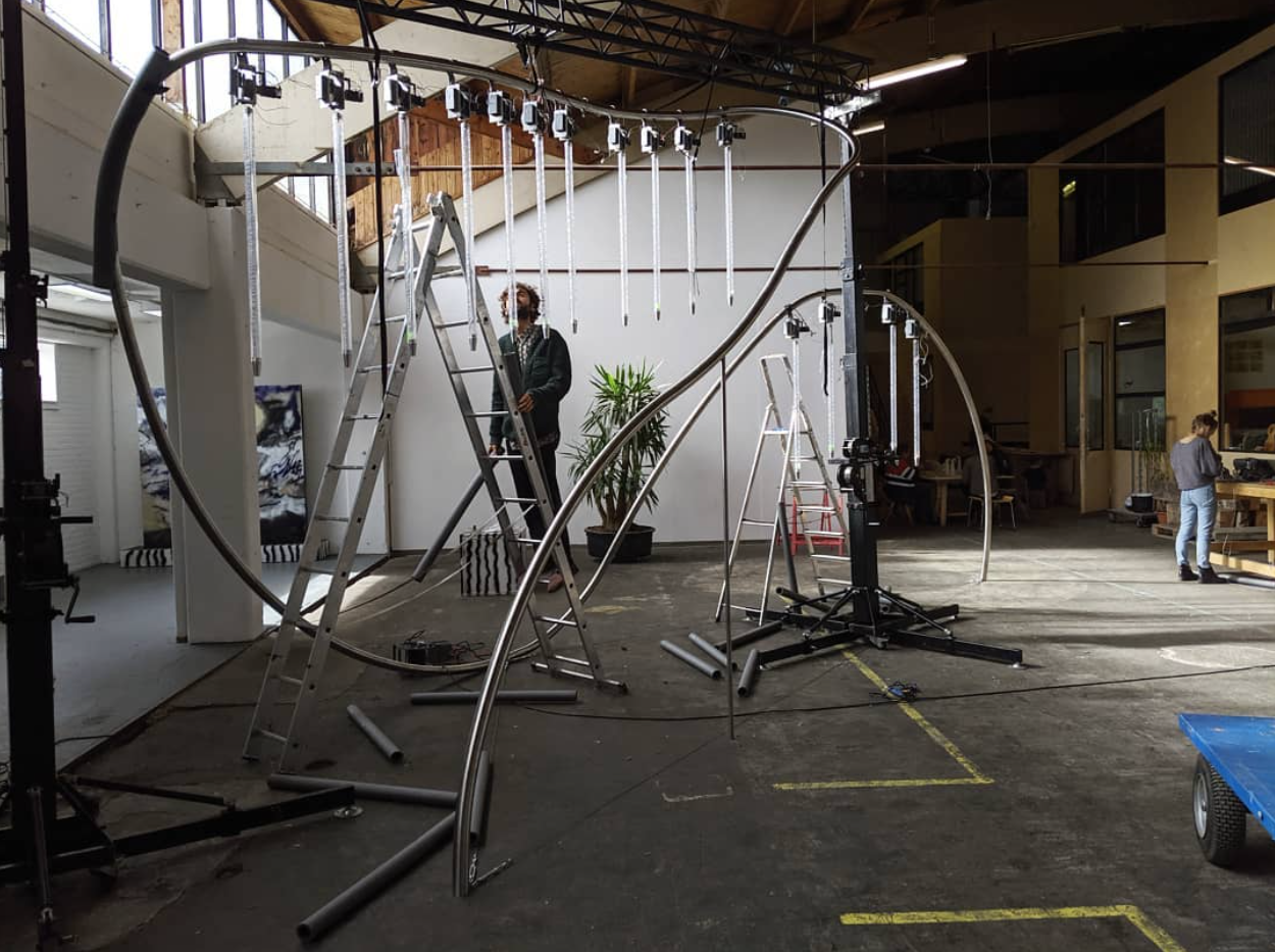 Together with Studio Yūgō I developed the hardware and firmware for their work Pas de Deux – a gigantic kinetic installation replaying motion captured dancer movements through 18 led lit glass pendants.